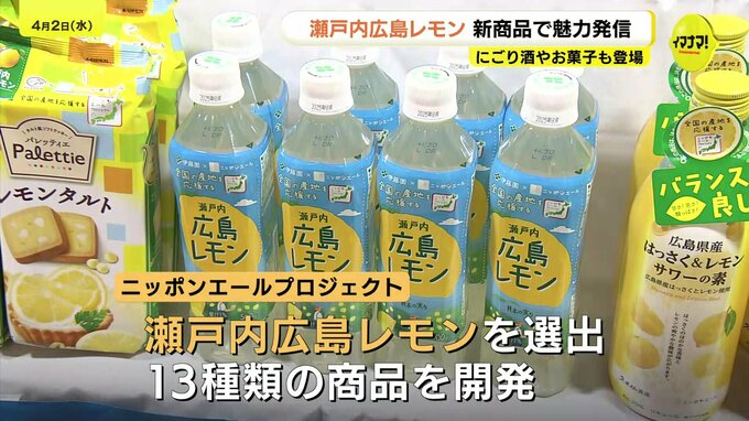 宮崎県の日向夏、長野県のりんごなどに続き、第5弾として「瀬戸内広島レモン」が選ばれ、清涼飲料水やにごり酒、ゼリーやグミなど13種類の商品が開発されました。