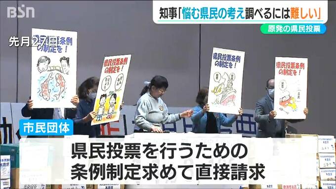柏崎刈羽原発再稼働の是非を問う県民投票をめぐっては、県民投票実施の条例制定を求める市民団体が3月に、花角英世知事に対して直接請求をしています。