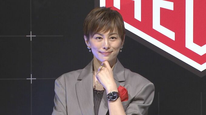 ジャケットに、ひざ丈のスカートで登場した米倉涼子さんは“特にこだわりはないのですが、普段から隣の芝が青く見えるタイプなんです”と自己分析し、“常日ごろから自分もああなりたい、たどり着きたいと思ってしまうんです。そういう気持ちといつも一緒にいる気がします”と語りました。