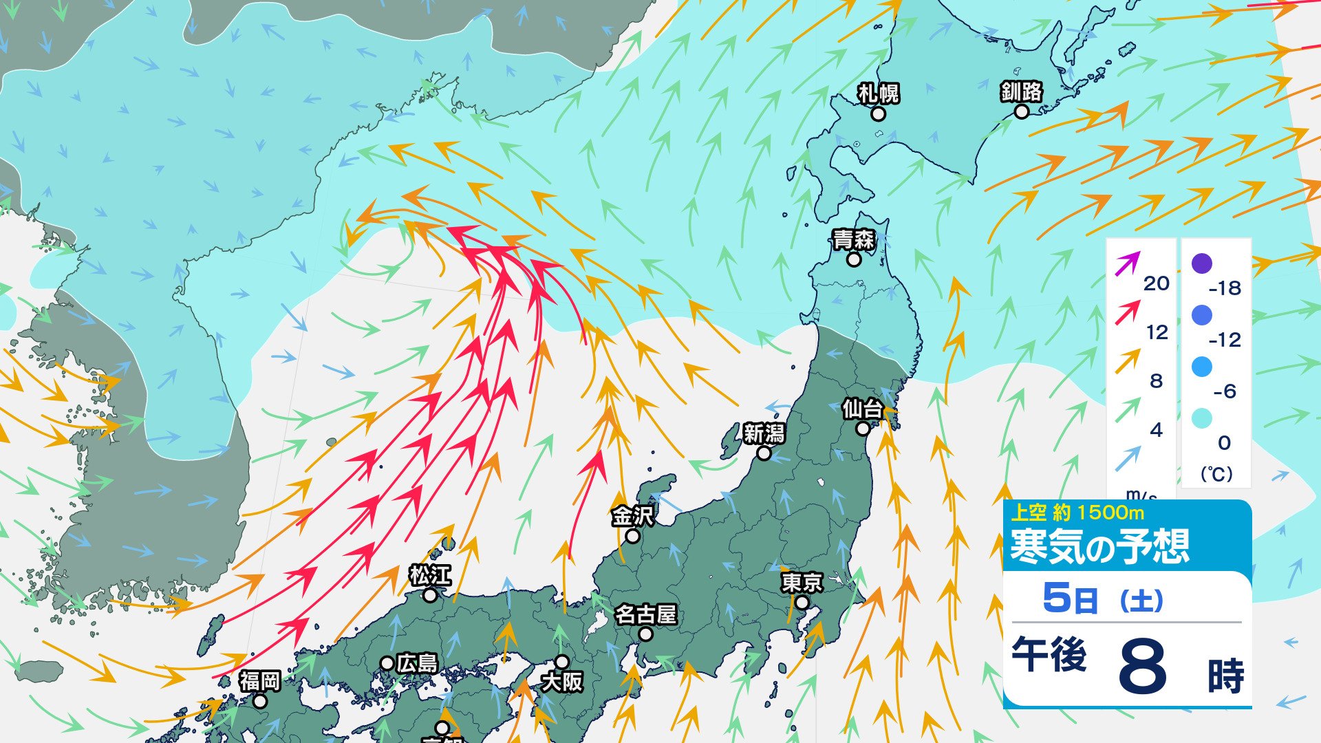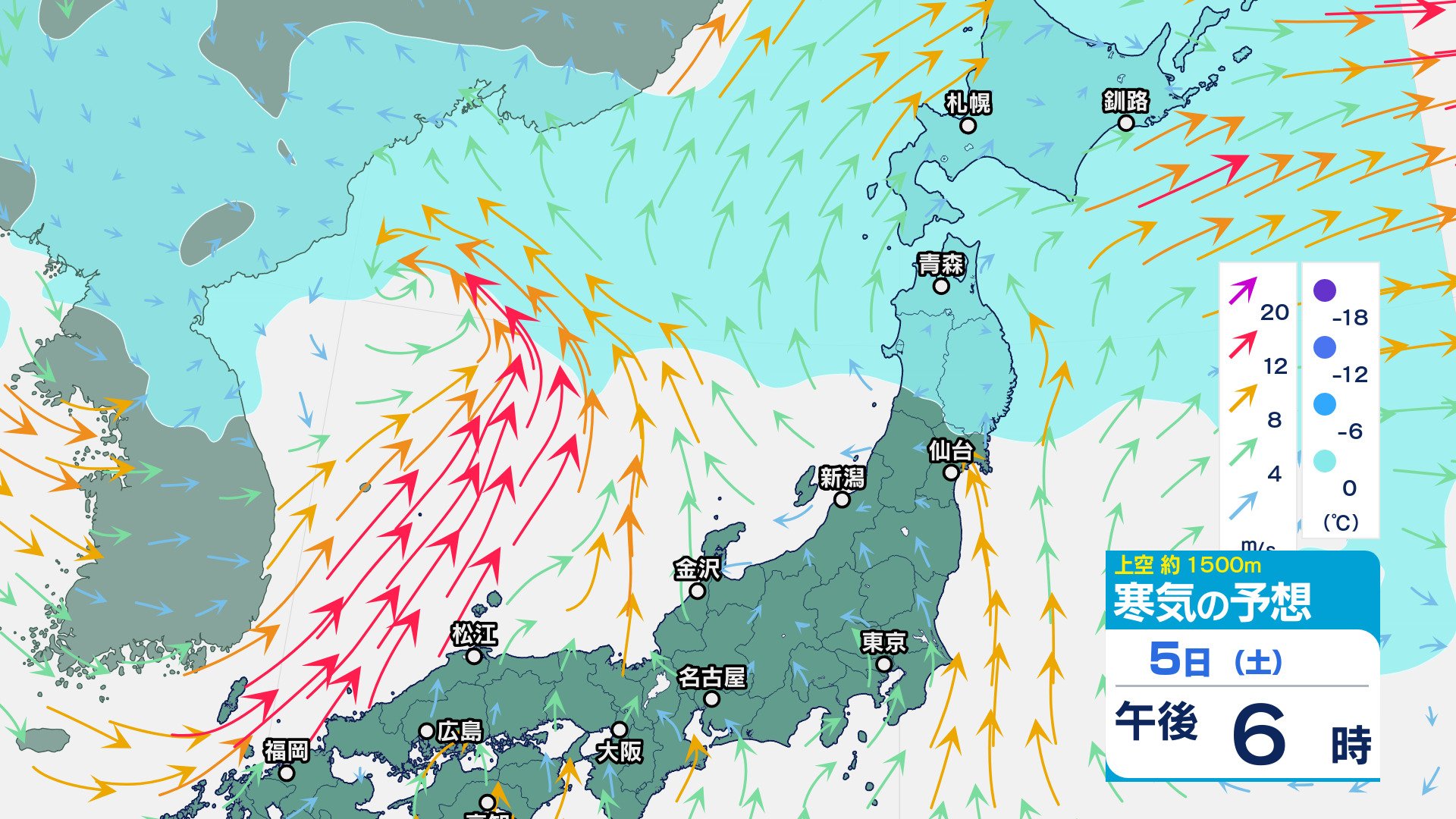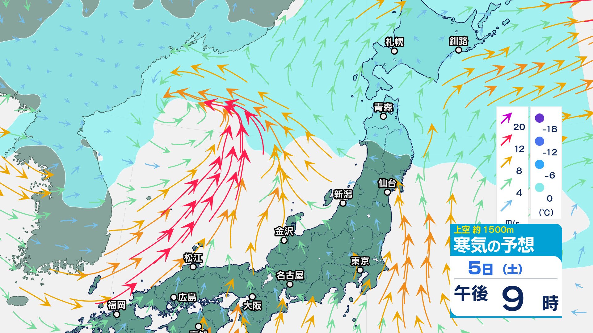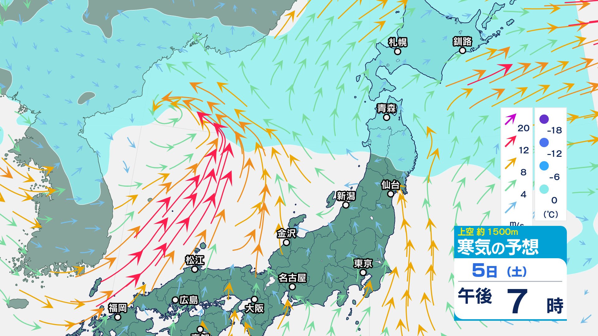 低気圧が発達しながら北東へ 関東地方は大雨の峠越えるも土砂災害に注意 うねり伴いしける見込み【寒気のシミュレーション】 チューリップテレビ 2025年4月3日(木) 08:35 国内 天気 5日(土)上空の寒気シミュレーション