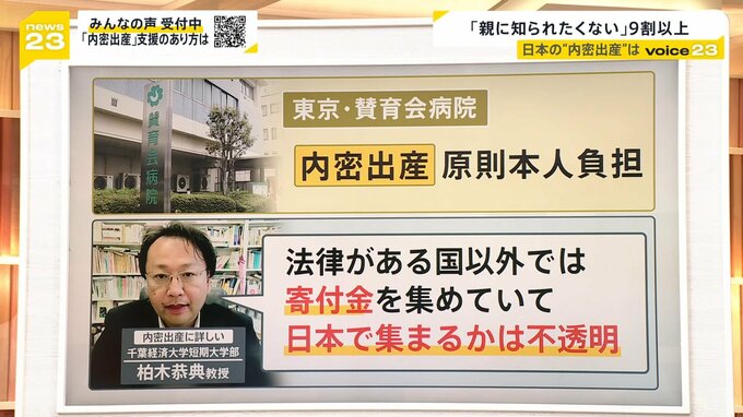 そして今、課題として挙げられている内密出産の費用について、熊本の慈恵病院は病院側が負担している一方で、東京の賛育会病院は原則本人負担であると発表しました。これについて、内密出産に詳しい千葉経済大学短期大学部の柏木恭典教授に話を聞きました。