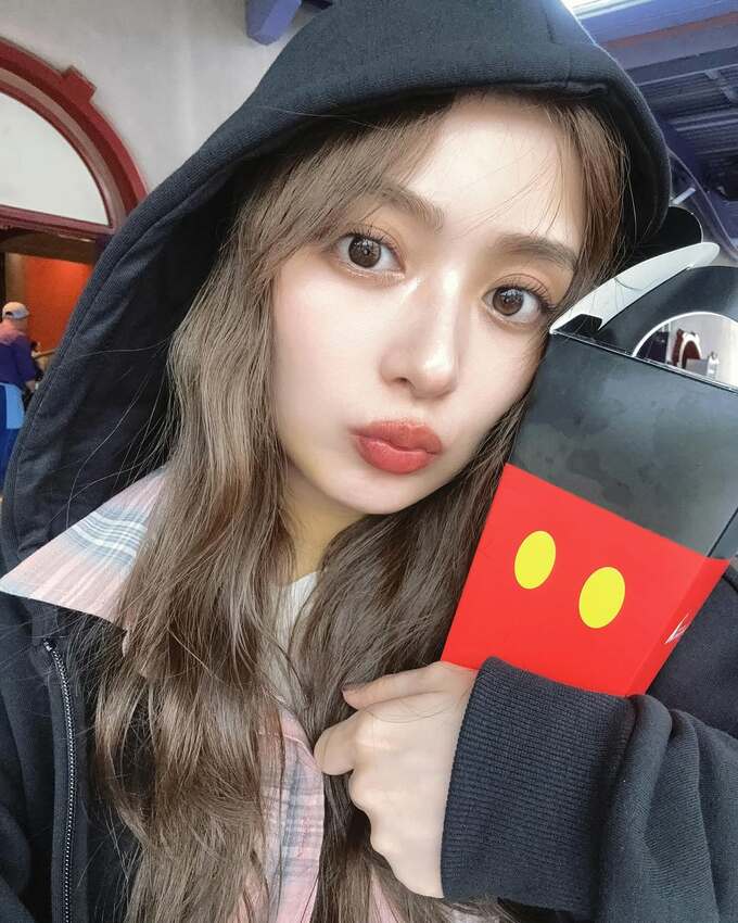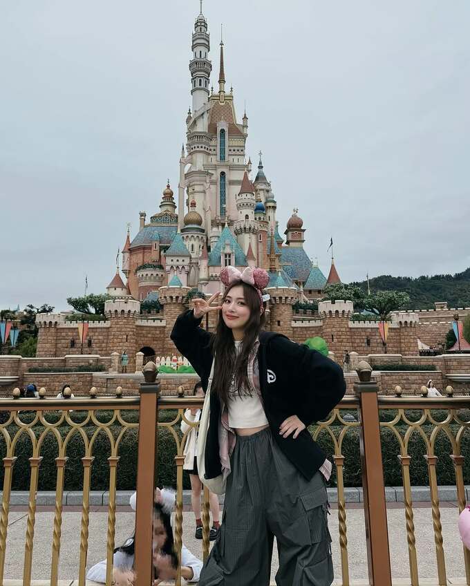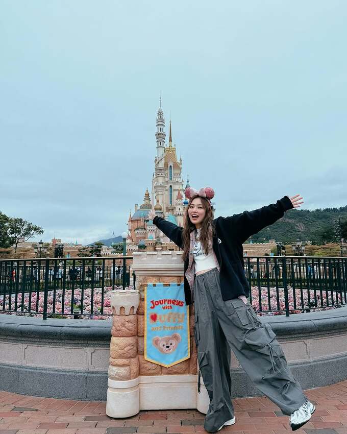 内田理央さんは黒と赤の♥の絵文字とサムズアップの絵文字で#hongkongを綴り、香港ディズニーを楽しんだ写真を投稿。