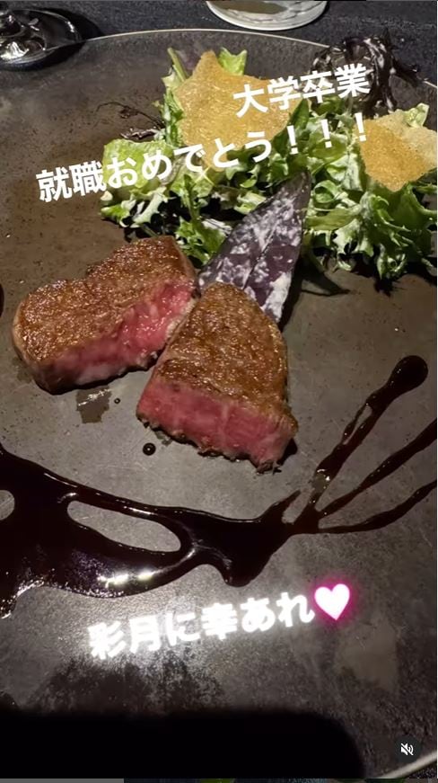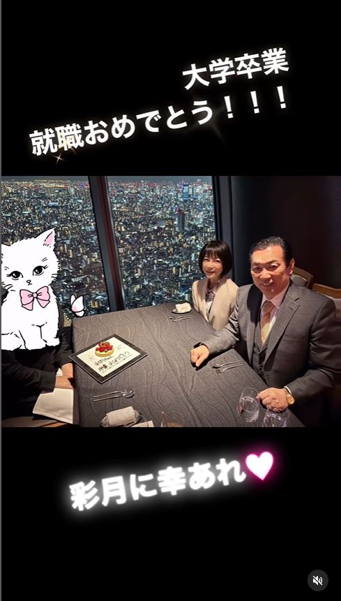 末娘の彩月さんが大学卒業と就職したことを報告しました。