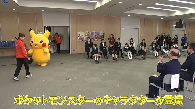 3日はワッペンに描かれている人気ゲーム「ポケットモンスター」のキャラクターも登場し、子どもたちが保険会社の社員や警察官から肩にワッペンを付けてもらいました。