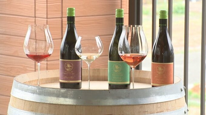 自社農園のブドウに加え県産ブドウを中心に使い、今は樽熟成やスパークリングなどを醸造中で今年度は12種類のワインを作る予定です。