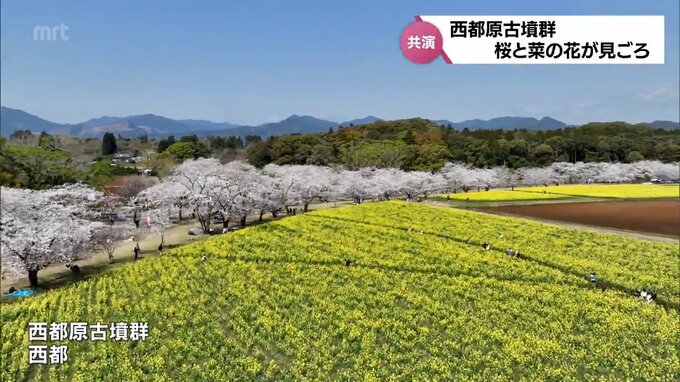 宮崎県西都市の西都原古墳群では、桜と菜の花が見ごろを迎え、花見客が春の花の共演を楽しんでいます。一面に広がる黄色い菜の花と満開の桜。西都原古墳群では、およそ2000本のソメイヨシノと30万本の菜の花が見ご…