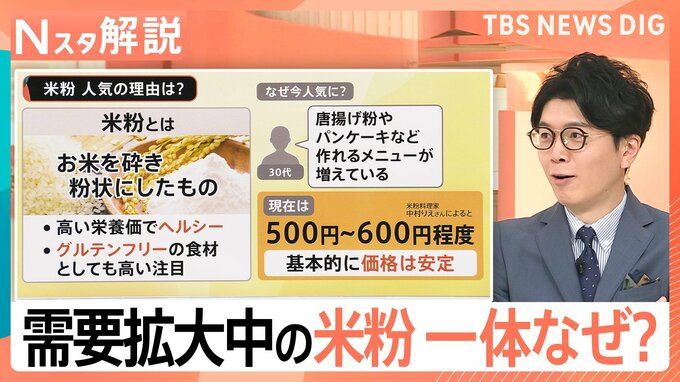 「米粉」を使っている方も多くいるかと思いますが、米粉カレーに、米粉ピザまで今、注目されているワケがありました。山形純菜キャスター:米粉の需要量は、農林水産省の資料によると年々増加しており、2024年度は5…