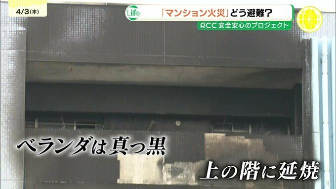 1日の熊野町の火事では13階建ての県営住宅の12階の一室が全焼。ベランダも真っ黒に焼け焦げ、上の階の外壁にまで延焼していました。