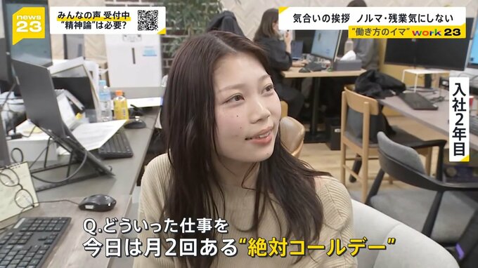 “働き方のイマ”をテーマにした「work23」。今回のテーマは、いわゆる“精神論”について。コンプライアンス重視の時代にありながら、「新しいかたち」の熱い指導が“売り”の企業を取材しました。みなさんは職場における精神論、賛成ですか?反対ですか?