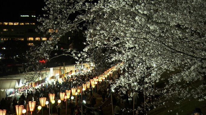 岡山さくらカーニバルが開催されている岡山市の旭川河川敷ではライトアップも行われ、夜桜をめでる人たちでにぎわっています。ピンク色の可憐な花びらが暗闇の中に美しく浮かび上がります。約1キロに渡り250本のソ…