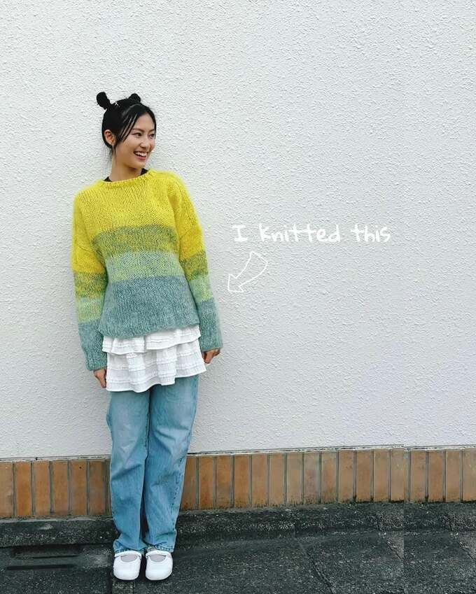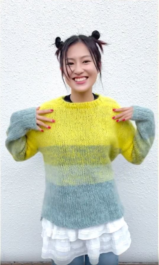 Isn't it so cute? I would like to try knitting more different types of clothes!! I'll post it when I make something again」(このセーターは私が編んだものです。 とても可愛いでしょう?もっと色々な服を編んでみたいと思います!!また何か編んだら投稿します)」と、締めくくりました。