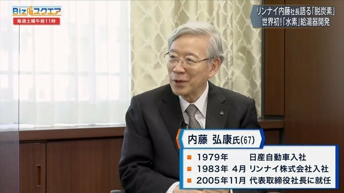 ガス給湯器で国内シェアトップのリンナイが、世界で初めて二酸化炭素(CO2)を排出しない家庭用水素給湯器を開発した。内藤弘康社長は「メーカーとして脱炭素社会の実現に向けたCO2削減が大きな使命のひとつだ」と言う。脱炭素時代にどのような成長戦略を描くのか、内藤社長に聞いた。