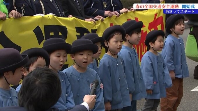 開始式には八重樫副知事や県警の増田武志本部長のほかに、盛岡市の桜幼稚園の園児9人も参加しました。