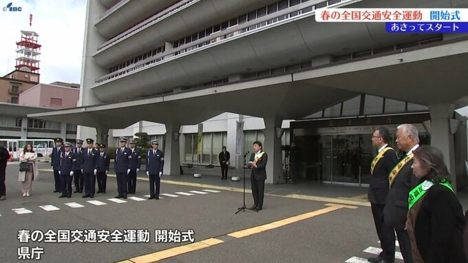 6日から始まる春の全国交通安全運動を前に4日、岩手県庁前で開始式が行われました。