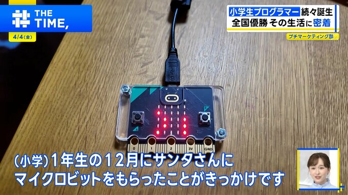 そもそも興味を持ったきっかけは、小1の時に「サンタさんにもらった」プログラミング教育向けの超小型のコンピューター「マイクロビット」だといいます。