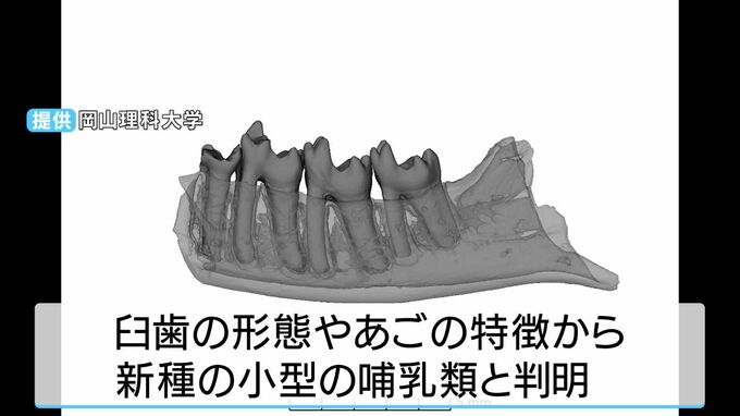 岡山理科大学によりますと、モンゴル科学アカデミー古生物学研究所との共同発掘調査隊が2019年に発見した化石を約7年にわたり研究した結果、新属新種の哺乳類だったことがわかりました。モンゴルのゴビ砂漠にある約1憶年前の恐竜時代の地層から見つかったものです。