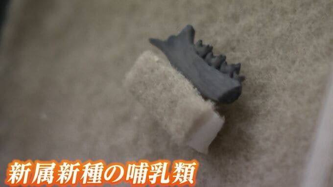 「こちらの約1センチの顎の化石を研究した結果、新属新種の哺乳類であることが分かりました」