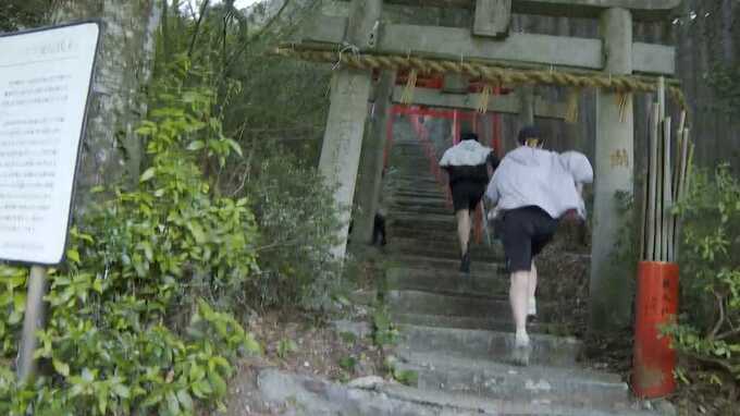 プロデビュー戦まで2週間。この日のトレーニングメニューは、福岡市近郊の神社で階段ダッシュ。蒼井選手が一番キツイという下半身強化のメニューです。