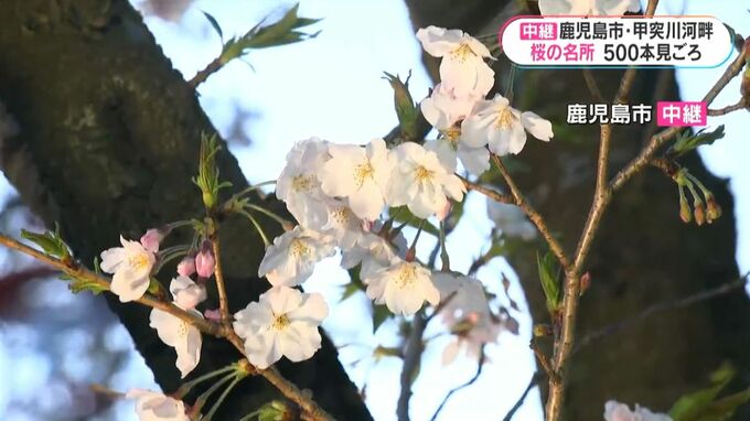 今週は県内各地の桜の名所を中継でお伝えしています。鹿児島市の甲突川、河畔に亀田気象予報士がいます。亀田さん!だいぶ暗くなりまして、一層、桜のライトアップが引き立つようになりました。吹く風も少しずつ冷…