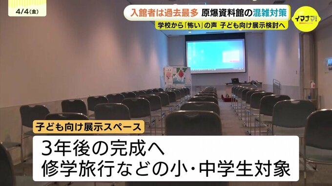 資料館では3年後の完成を目指して、小・中学生を対象にした「子ども向け」の展示スペースを整備します。修学旅行生を分散化できるため、混雑対策につながるとしています。