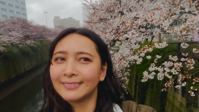 加藤さんは「衣装合わせ行ってきました」と報告。帰りの道中なのか、目黒川の橋の上からの自撮りを数枚に渡って投稿。自身の背景には咲き誇る桜が差し込んでいて、美しさが際立っています。