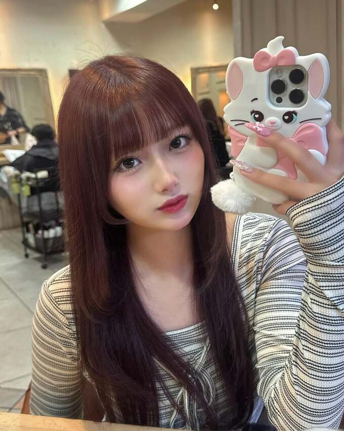 髪色は少し赤みが差したようで「ピンクラベンダーだよ」と明かしています。また、鏡に向けられているスマホは、レンズが3つ備えられていて「Pro」のiPhoneと思われます。さらにディズニーの “マリーちゃん” のスマホケースが装着されていて、先日訪れて投稿していた「ディズニーシー」の楽しさをそのままキャリーしている様子がうかがえます。
