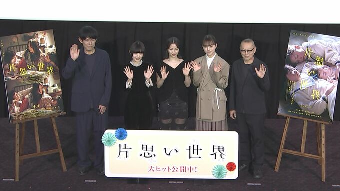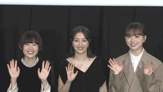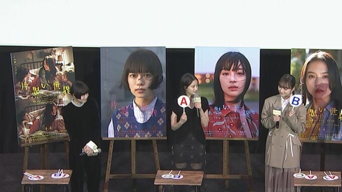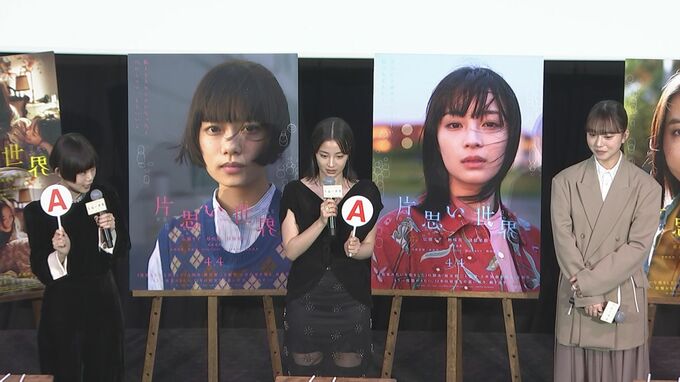 俳優の広瀬すずさん、杉咲花さん、清原果耶さんが、映画『片思い世界』公開記念舞台挨拶に登壇しました。