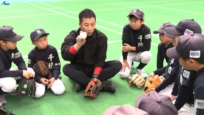 5日は小学生を中心に約40人が参加して、工藤さんからピッチング、西岡さんから正確なスローイングなどについてアドバイスを受けました。