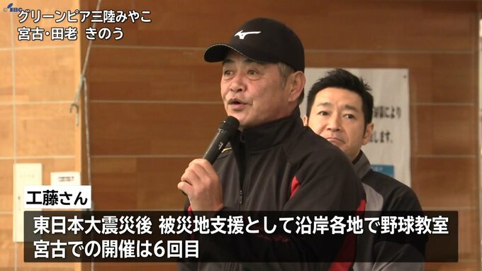 工藤さんは東日本大震災の後、被災地支援として沿岸各地で野球教室を開いていて、宮古での開催は6回目です。