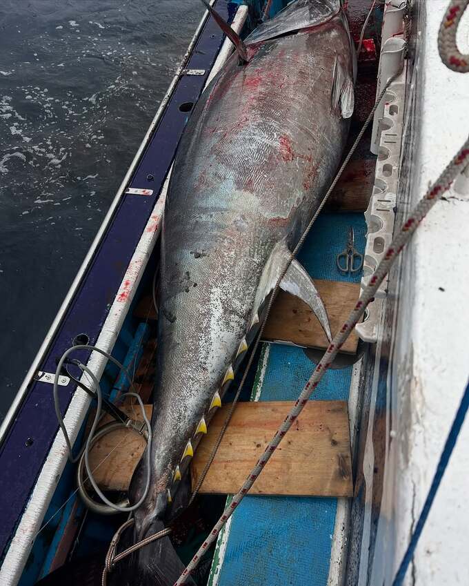 300キロ超の巨大クロマグロを釣り上げたことを報告しました。
