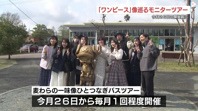熊本地震から間もなく9年。復興のシンボルとして設置された人気マンガ「ワンピース」像を巡るツアーが今月(4月)から始まります。ツアー開始を前に、きのう(4月5日)から1泊2日で行われたモニターツアーには、抽選…