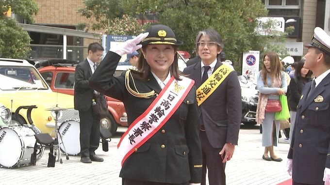 タレントのはるな愛さんが、「第26回 高輪交通安全フェア 品川クラシックカーレビュー イン港南」に東京・高輪警察署1日警察署長として登壇しました。