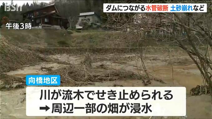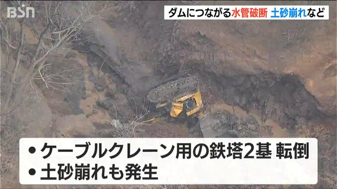6日午前8時に、県が現場を確認したところ、後谷ダムから発電所に繋がる水管が破損。また、ケーブルクレーン用の鉄塔2基が倒れたほか、土砂崩れも発生していたということです。