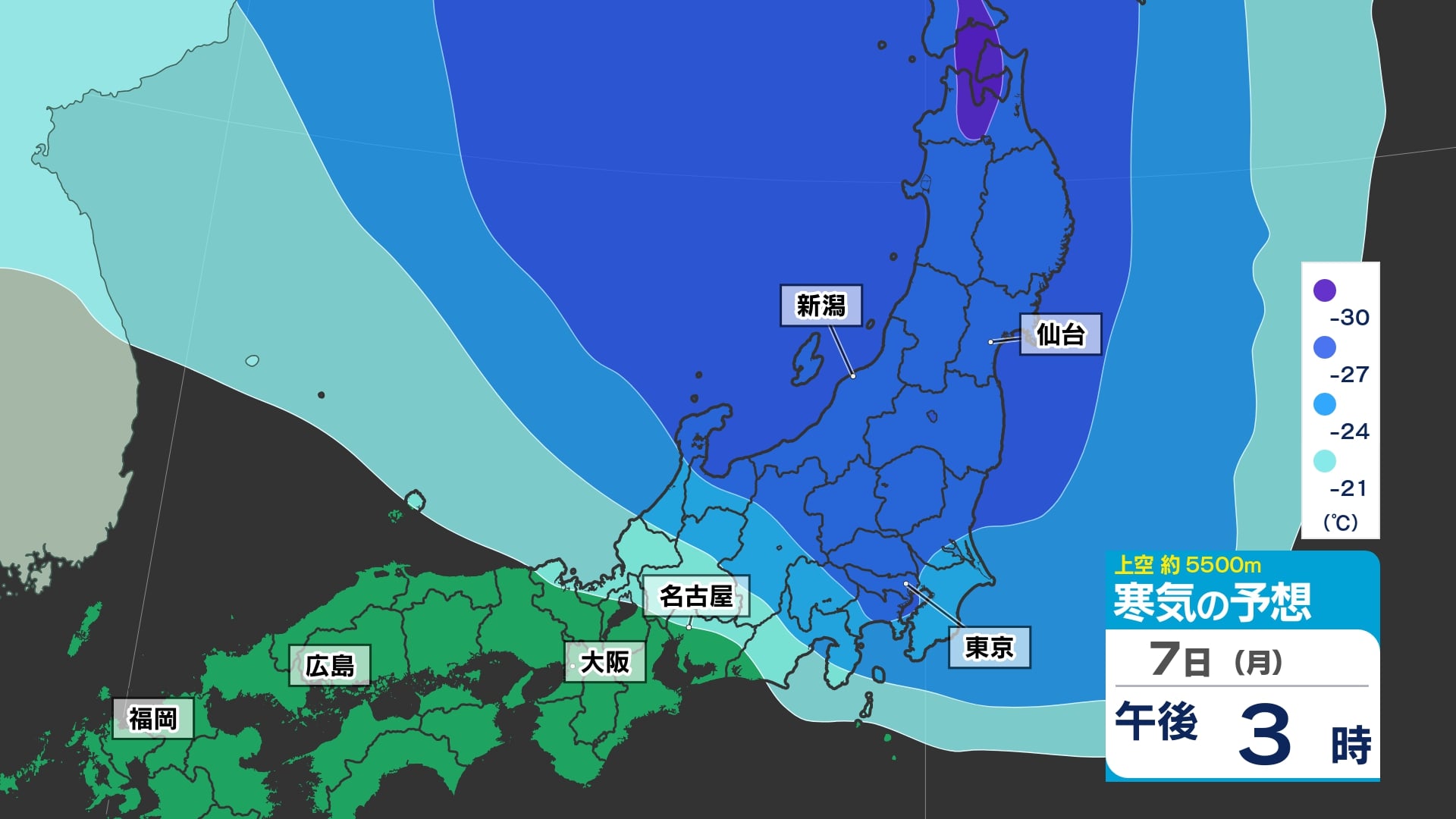 東京首都圏【局地的な激しい雨 落雷 突風 ひょうに注意】大気の状態が非常に不安定 気象庁発表 気象情報を詳しく【発生確率 雨 寒気のシミュレーション7日(月)昼前~夜遅く】 南日本放送 2025年4月7日(月) 16:30 国内 天気 【寒気】のシミュレーション 東日本の上空約5500メートルに、氷点下27度以下の平年を10度近く下回る寒気が、流れ込んでくる見込みです。大気の状態が非常に不安定になる原因のため、画像で確認しておきましょう。