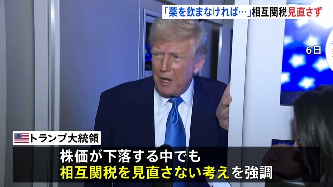 アメリカ・トランプ政権の「相互関税」により株価は世界的に急落していますが、トランプ大統領は「薬を飲まなければいけないときもある」と述べ、政策を見直さない考えを強調しました。アメリカ トランプ大統領「…