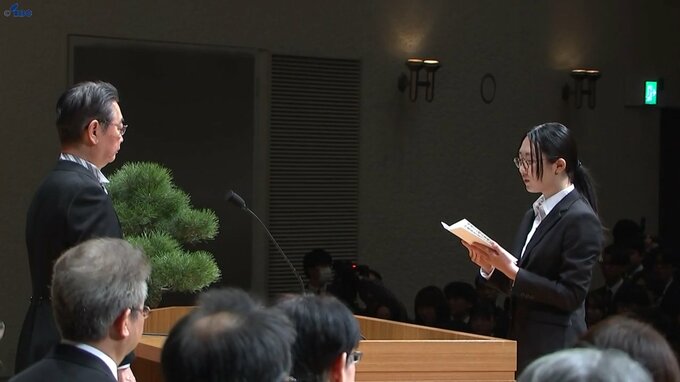 新入生を代表して獣医学部の太田温菜さんがあいさつしました。