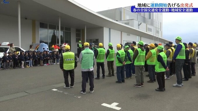 春の全国交通安全運動と地域安全運動が6日から始まり、滝沢市で7日、地域に運動の開始を告げる出発式が行われました。