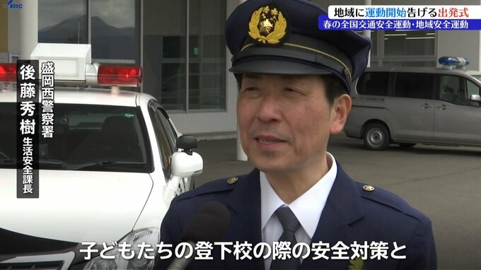そして式では盛岡西警察署の永澤幸雄署長が「春は新生活が始まり、交通事故や犯罪が発生するリスクも高くなる」と述べ地域の人たちに注意を呼びかけました。
