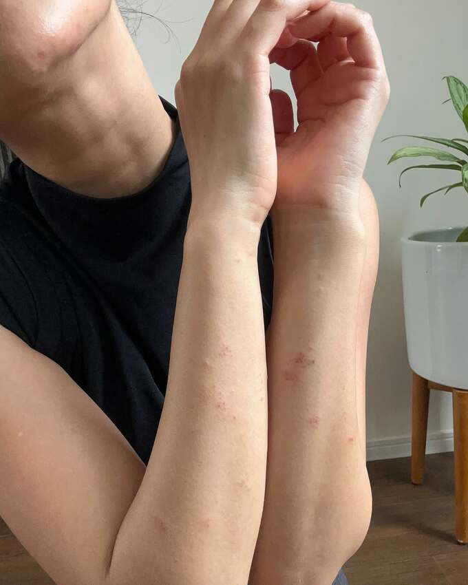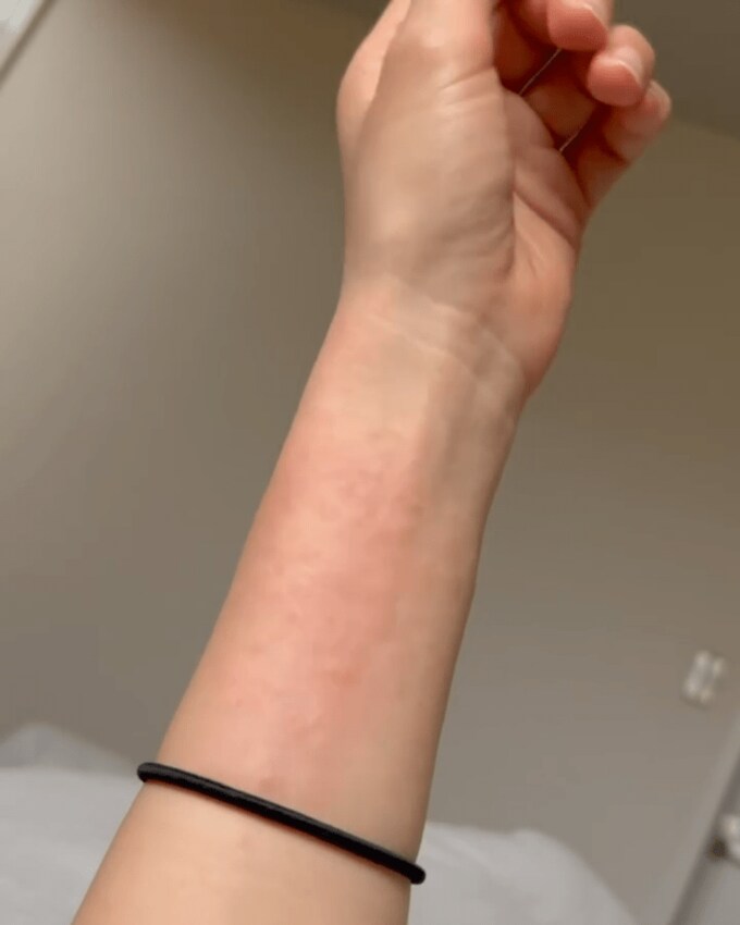 そして「最初は腕から始まり、両耳、顔(特に目周り、小鼻横、顎、こめかみ〜フェイスライン)、下半身と、胴体を除いた全てに湿疹が出るようになりました。」と、明かしました。