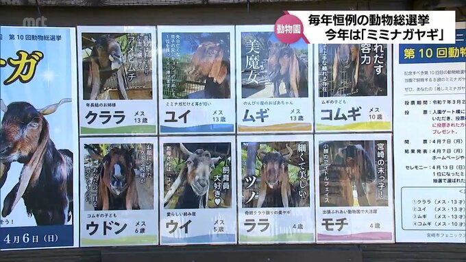 宮崎市フェニックス動物園が、毎年、春休みに実施してきた動物総選挙が10回目を迎えました。