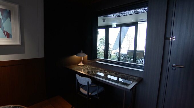 「ホテルの廊下には、大きな窓があります。中はホテルの部屋になっていて、窓のそばには書斎があり、中庭を見ながら新たなアイデアを思い浮かべて欲しいと作られているんだそうです」