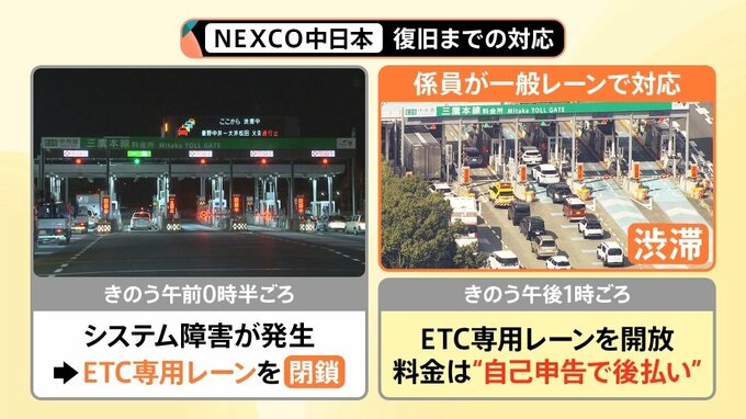 6日午前0時半ごろ、システム障害が発生し、ETC専用レーンを封鎖しました。係員が一般レーンで対応するということで渋滞が発生し、現場の皆さんも大変な状況に追い込まれました。