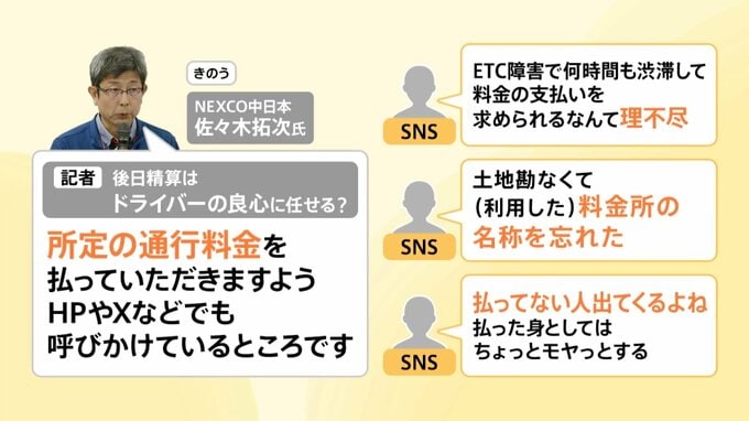 「所定の通行料金を払っていただきますよう、ホームページやXなどでも呼びかけているところです」