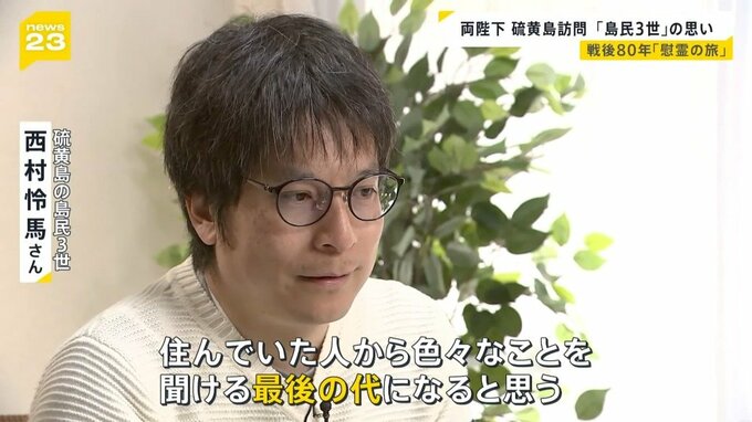 西村さんは7日、硫黄島で両陛下と懇談し、戦争体験を語り継ぐための取り組みについて説明しました。