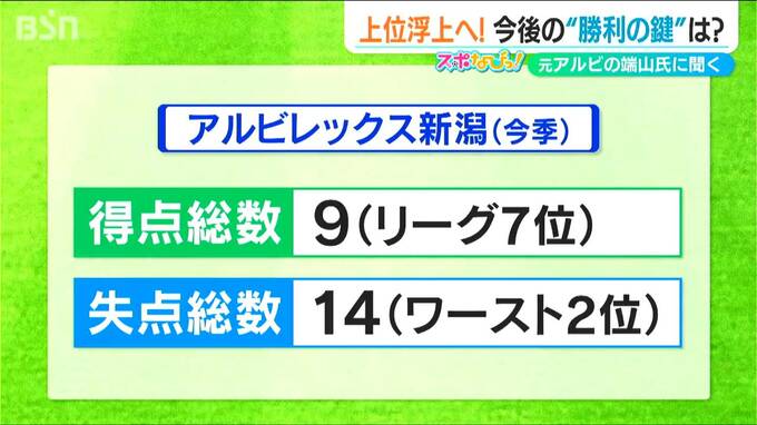 今シーズンここまでのアルビレックス新潟は、リーグ7位となる9得点を上げている一方で、失点数はワースト2位となる14点です。(4月7日現在)