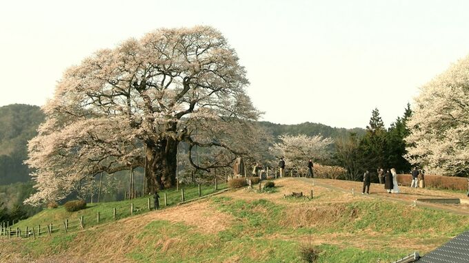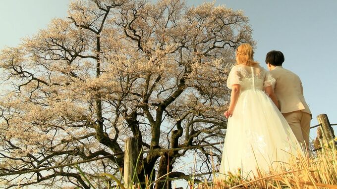 岡山県の天然記念物にも指定されている真庭市の一本桜、醍醐桜が見ごろを迎えています。多くの人が花見を楽しむ中、一生の思い出にしようと、県外から訪れたカップルの姿もありました。