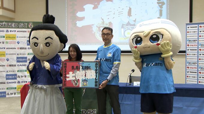 高知市で両チームが会見を開き発表したものです。高知ユナイテッドSCが今年からJリーグに参入したことにより、同じくJ3のカマタマーレ讃岐とのダービーマッチが実現することになりました。