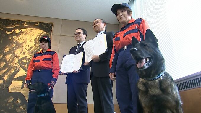 南海トラフ地震など災害時の捜索活動を円滑に行うため、救助犬の出動に関する協定を香川県と愛犬団体が結びました。協定締結のため香川県庁にやってきた2頭の災害救助犬です。協定は、南海トラフ地震の発生が懸念…