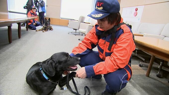 協定締結のため香川県庁にやってきた2頭の災害救助犬です。協定は、南海トラフ地震の発生が懸念される中、災害時の救助体制を強化しようと香川県がジャパンケネルクラブと結んだものです。