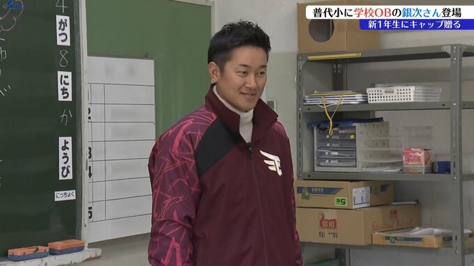 岩手普代村の小学校では、入学式に合わせてOBでもあるプロ野球・楽天のアンバサダー、銀次さんが学校を訪れ、新入生にチームのキャップを贈りました。徳岡アナウンサーの取材です。(徳岡アナリポート)「銀次さん…